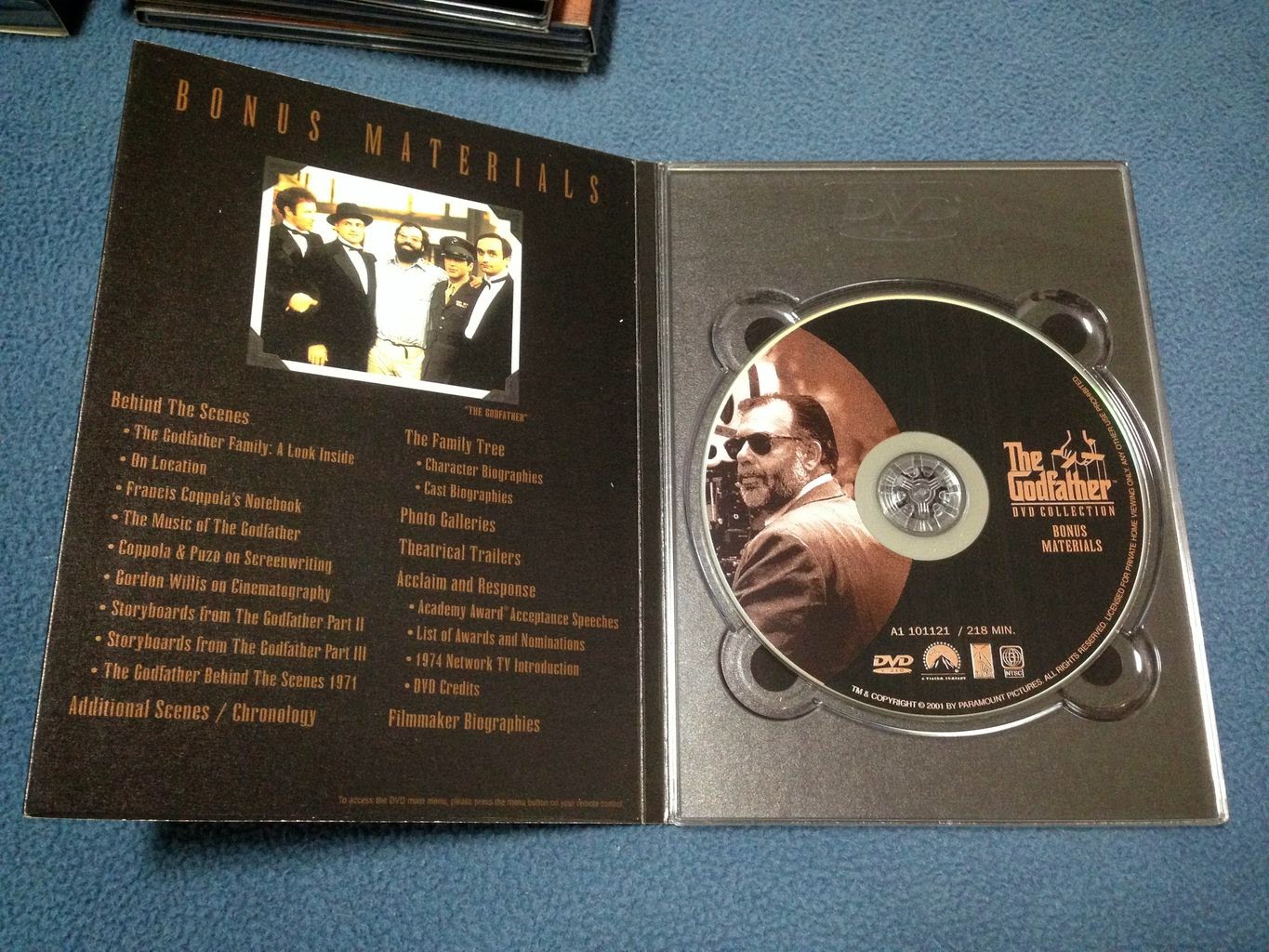 順便再把DVD版拿出來曬一下。這套是未修復版的套裝,當時出沒多久,記得是第二次再版時就收了。因為當年教父套裝出DVD是大事,很多人第一時間就收了,因此第一批銷很快。後來是搶到第二批貨。